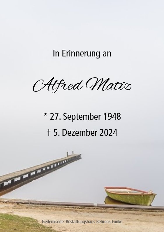 wir wünschen Ihnen von Herzen viel Kraft, dass Sie Menschen um sich haben, die Ihnen in dieser schweren Zeit beistehen und Halt geben. Zusätzlich können Sie auf dieser Gedenkseite Erinnerungen teilen und so das Andenken gemeinsam wachhalten.