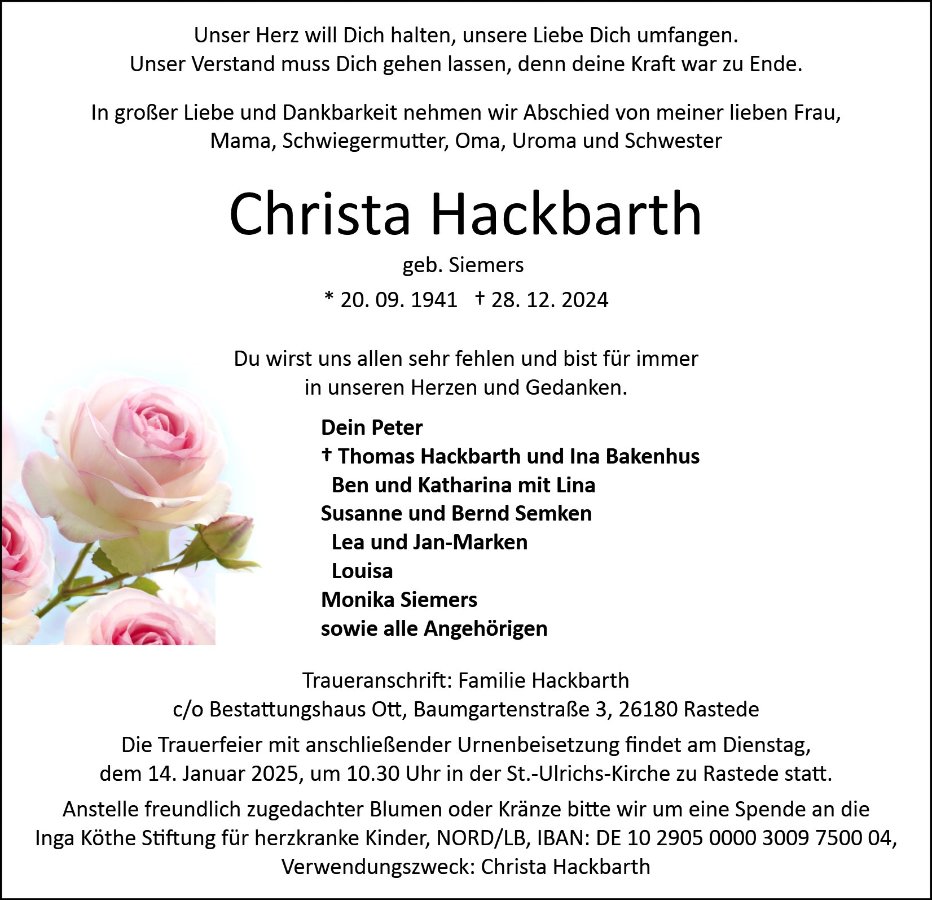 gestorben am 28. Dezember 2024 in Westerstede