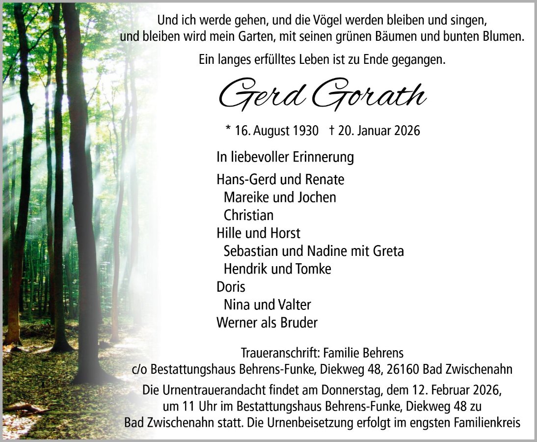 gestorben am 20. Januar 2026 in Westerstede