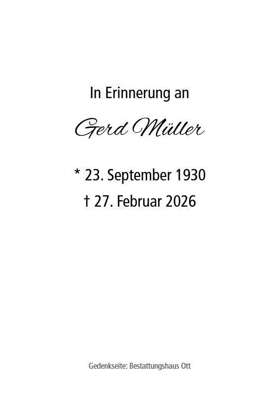 wir wünschen Ihnen von Herzen viel Kraft, dass Sie Menschen um sich haben, die Ihnen in dieser schweren Zeit beistehen und Halt geben. Zusätzlich können Sie auf dieser Gedenkseite Erinnerungen teilen und so das Andenken gemeinsam wachhalten.