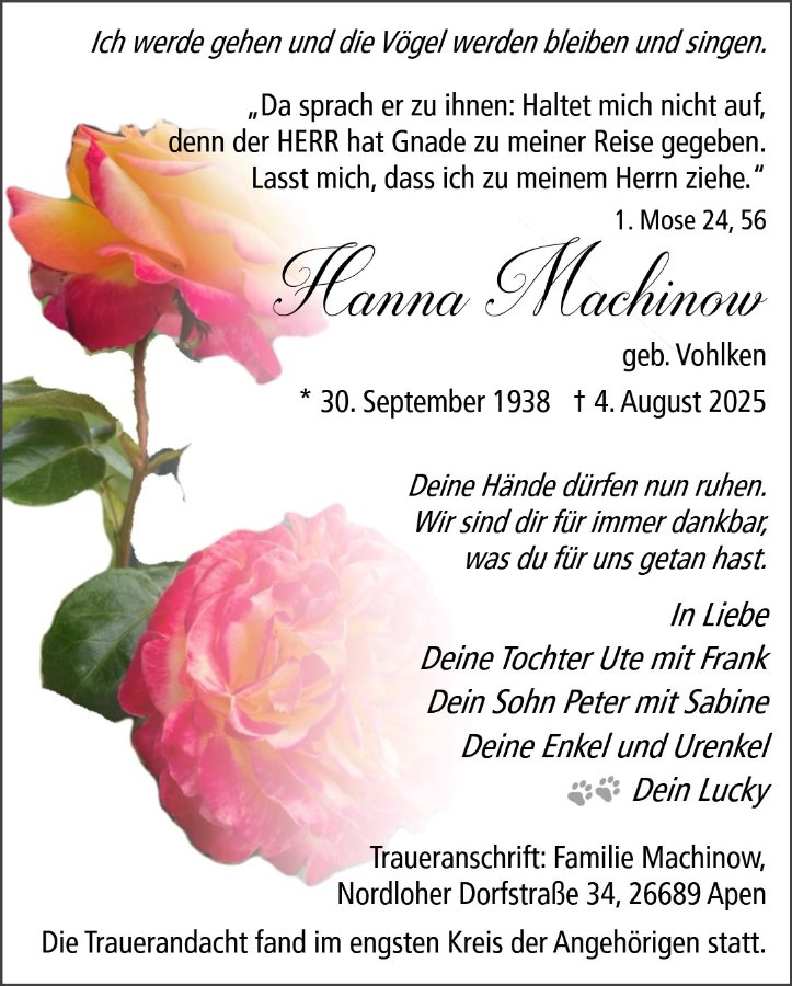 wir wünschen Ihnen von Herzen viel Kraft, dass Sie Menschen um sich haben, die Ihnen in dieser schweren Zeit beistehen und Halt geben. Zusätzlich können Sie auf dieser Gedenkseite Erinnerungen teilen und so das Andenken gemeinsam wachhalten.