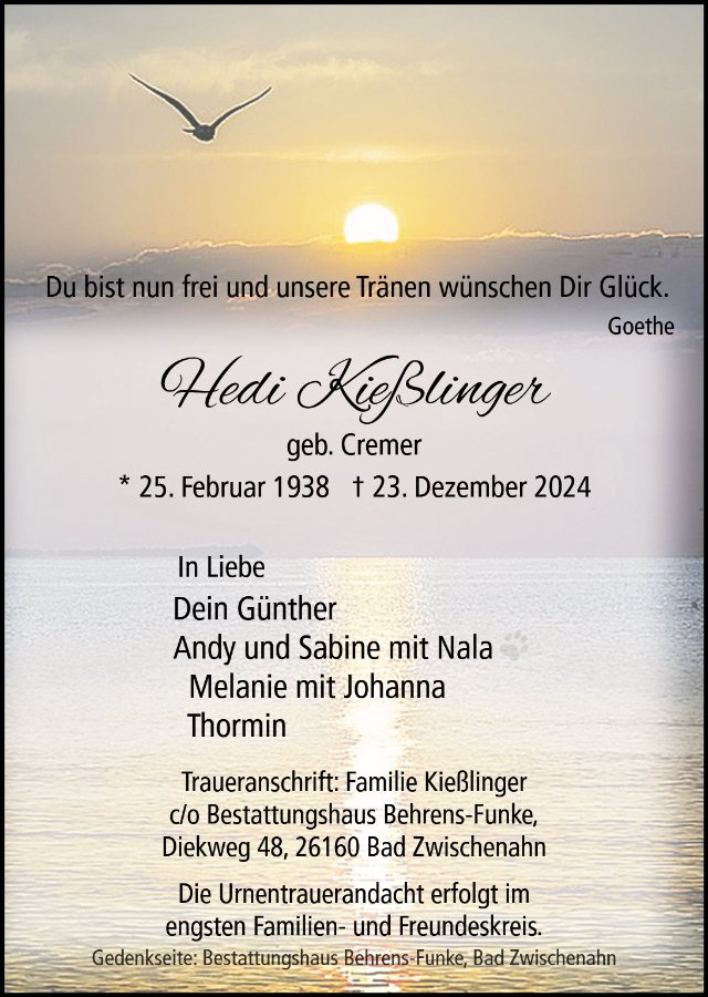 Sehen Sie hier die Termine der Abschieds- und Trauerfeierlichkeiten.
