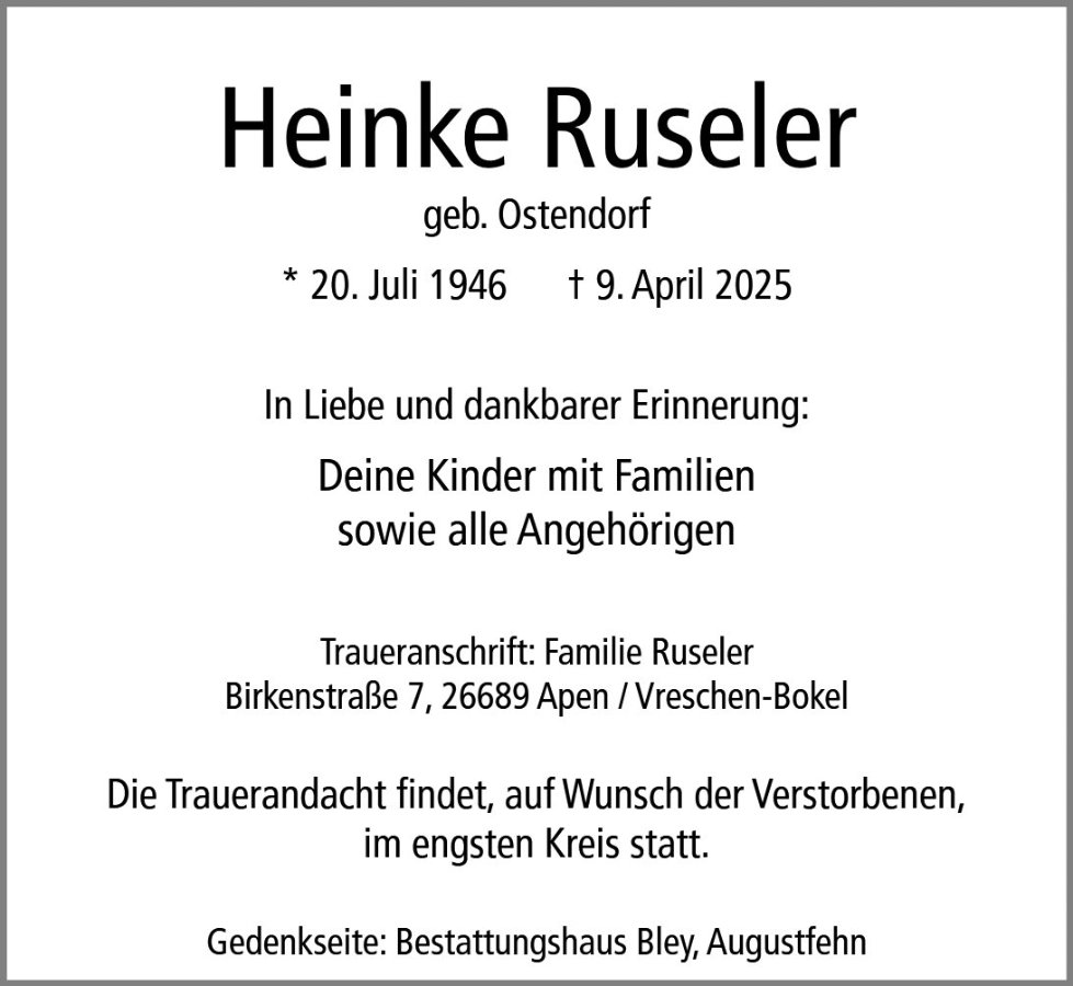 Heinke Ruseler geb. Ostendorf