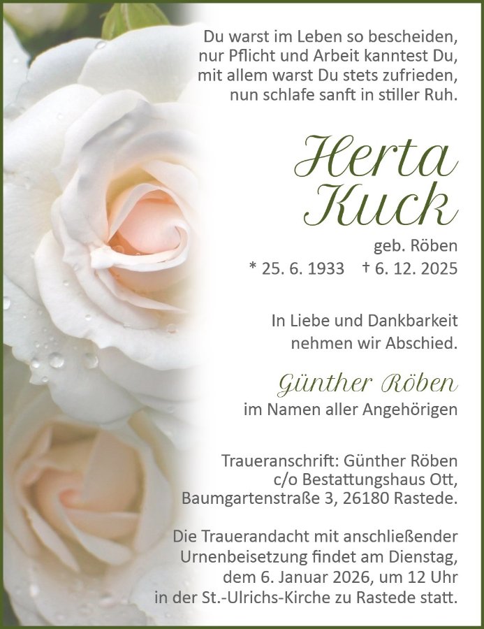 gestorben am 6. Dezember 2025 in Bad Zwischenahn