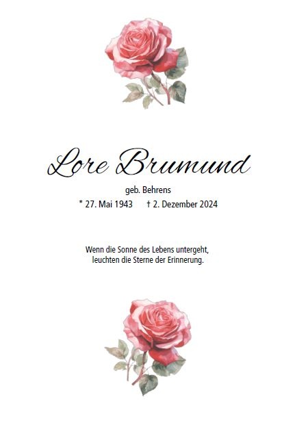 wir wünschen Ihnen für die kommende Zeit viel Kraft und dass es Ihnen gelingt, dankbar auf die positiven Erinnerungen zurückzublicken. Diese Gedenkseite möge Ihnen dabei helfen, Ihre Trauer zu teilen und das Andenken gemeinsam wachzuhalten.