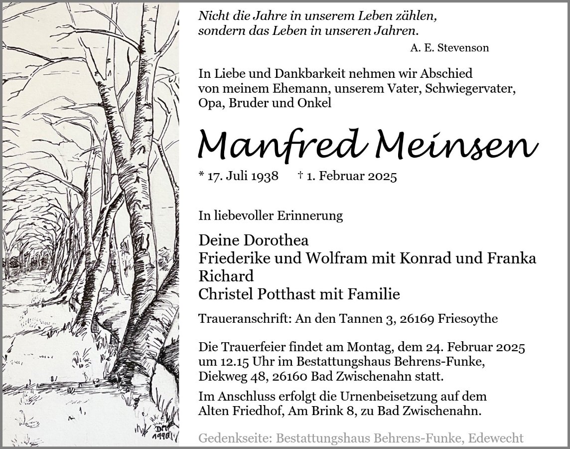 ein Zufall führt mich auf die Seite mit Manfreds Todesanzeige.